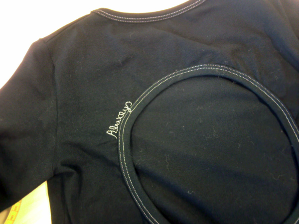 Ja sit tein vähän muutoksii paitaan, joka piti tehä omien mittojen mukaan just tietynlaiseks. Opettaja tarkasti ja palautti sen jo ni nyt voin tehä sille mitä huvittaa. Tein siihen aukon selkään ja sit siihen tulee kiertään sitä aukkoo jonkin matkaa teksti Always keep the faith. Mul on vasta eka sana valmis :(